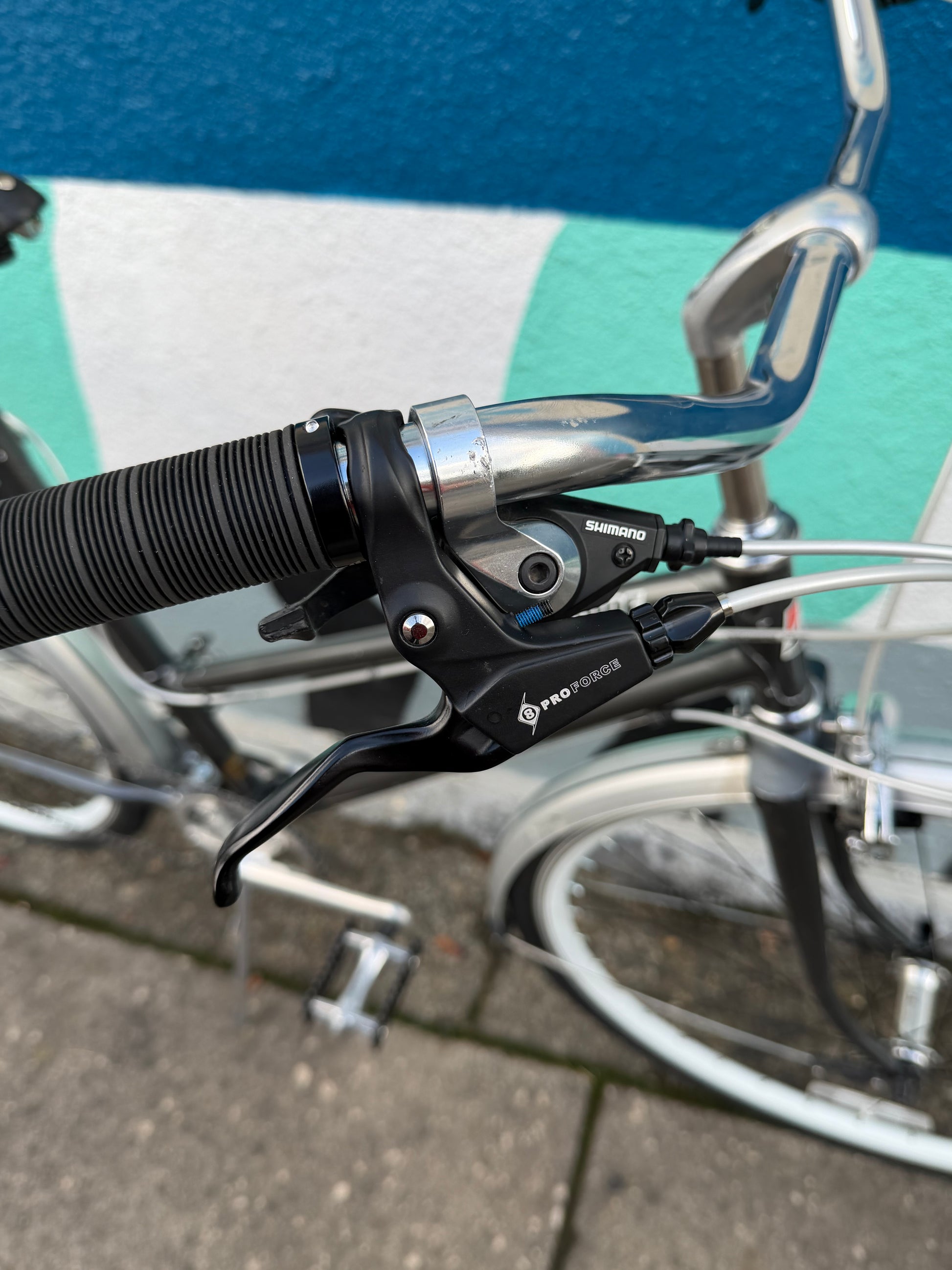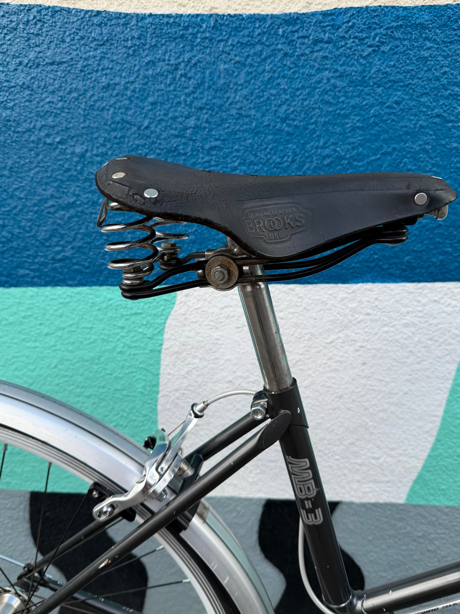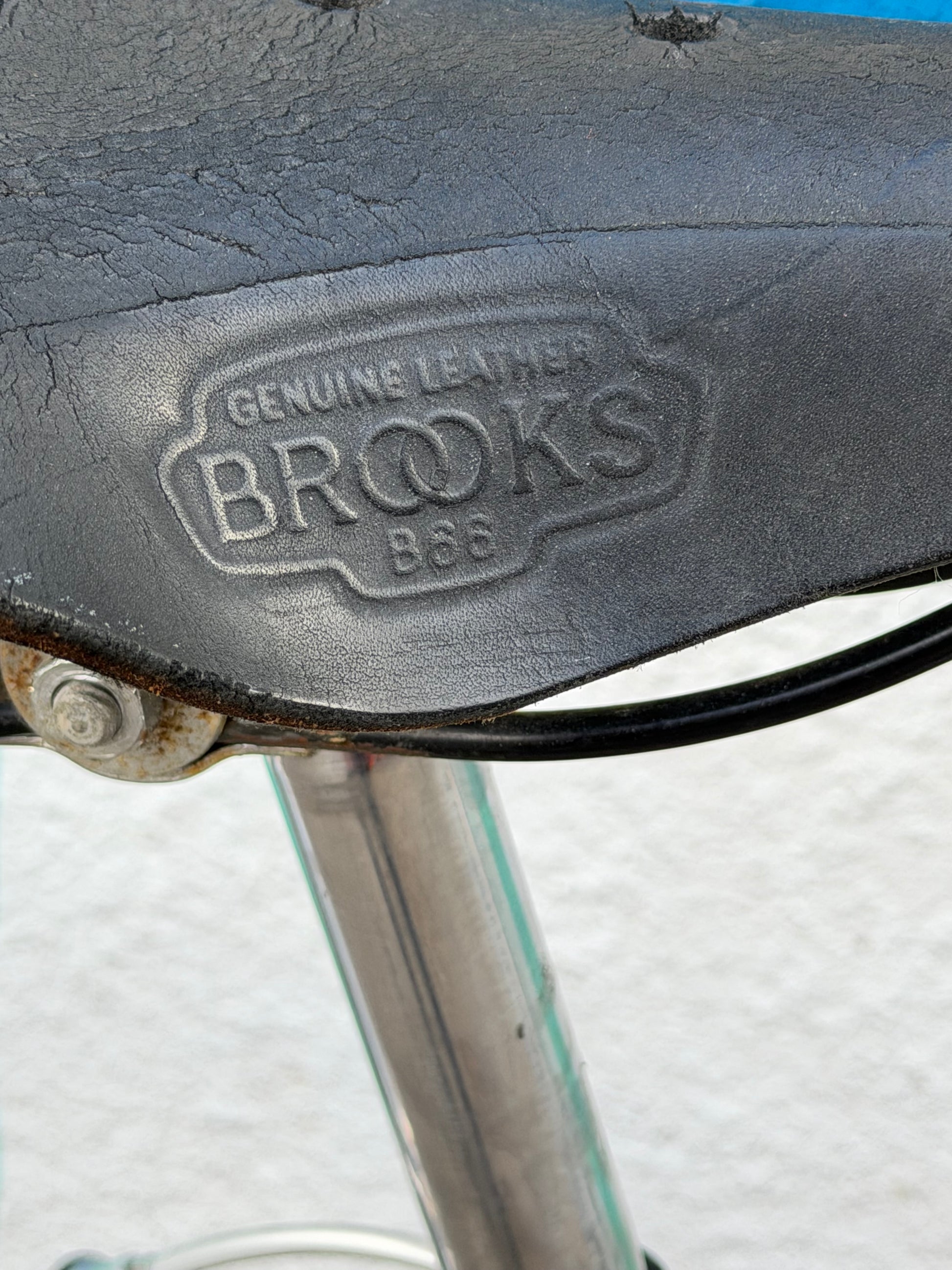 Not your everyday Bridgestone.  This 19” MB3 frame is rebuilt with 700c wheels and tires, a 1x8 drivetrain, made in USA backsweep bars, and a Brooks B66 saddle. Telstar R559 long reach brakes, Fresh grease in all bearings, a cartridge BB, new cable and housing too. Consider it the broke dads Rivendell platypus sendup.