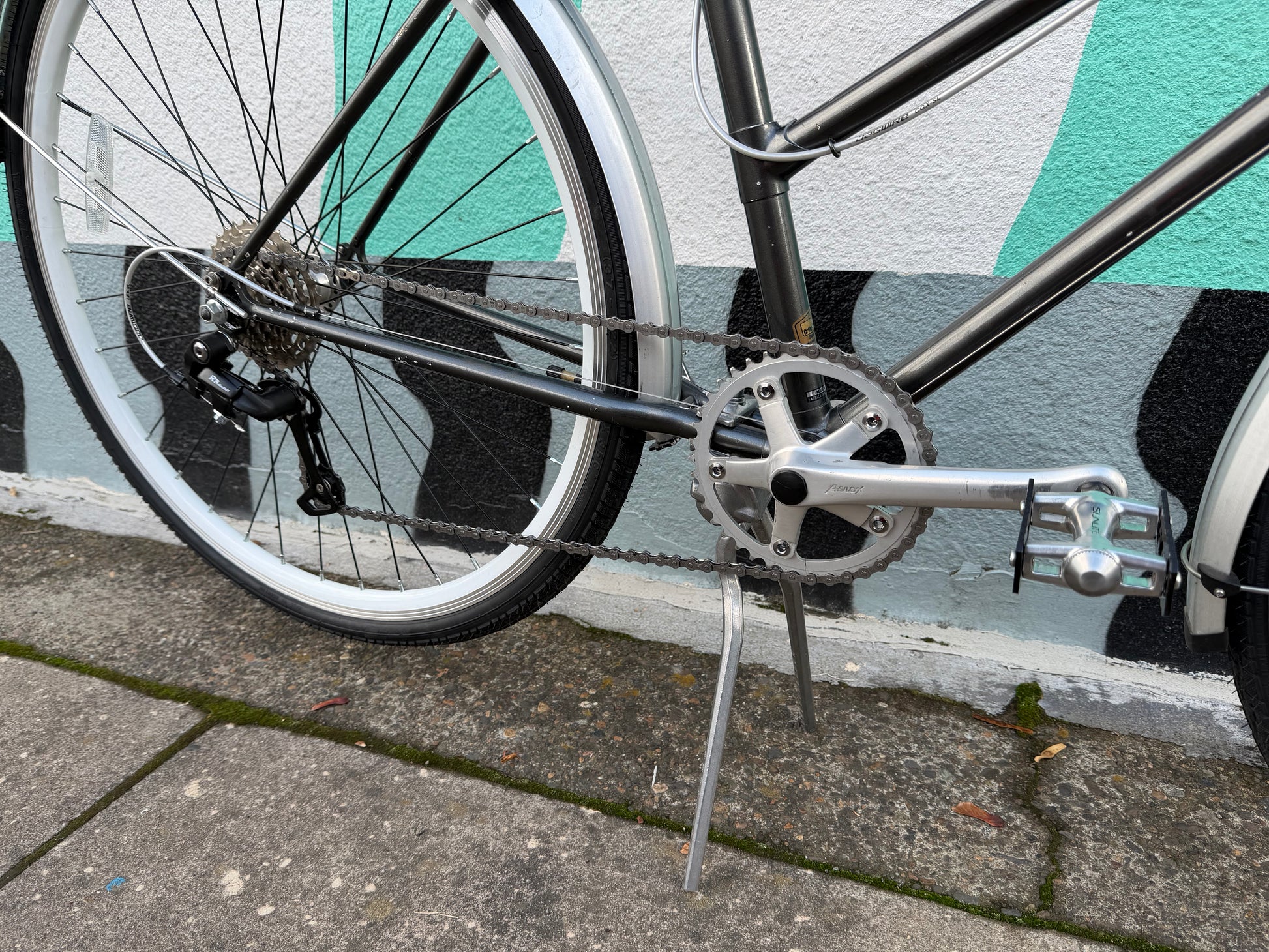 SKS fenders and a double leg kickstand already on there. Throw on a rack or basket and it’s the bike for Portland riding.
