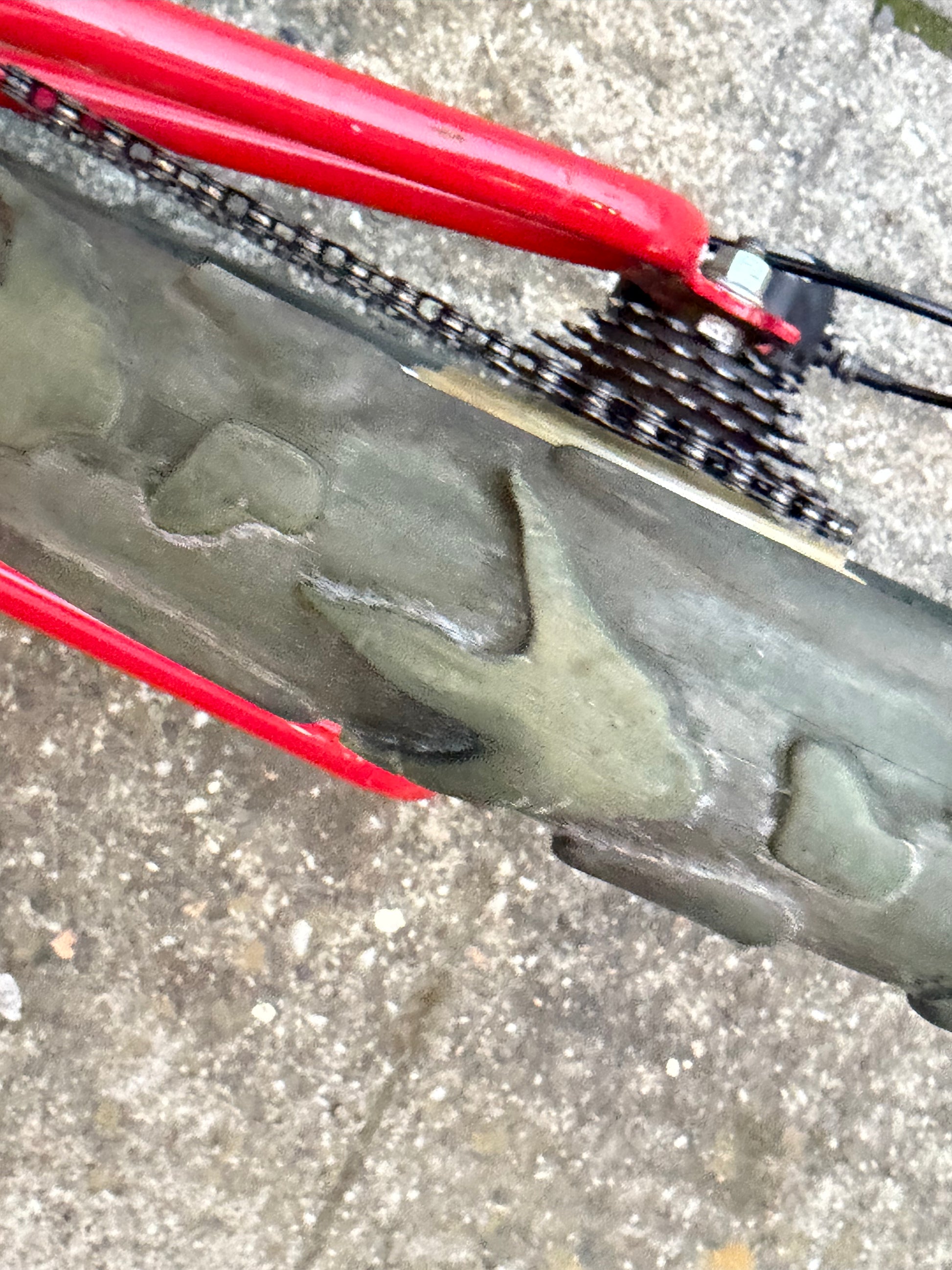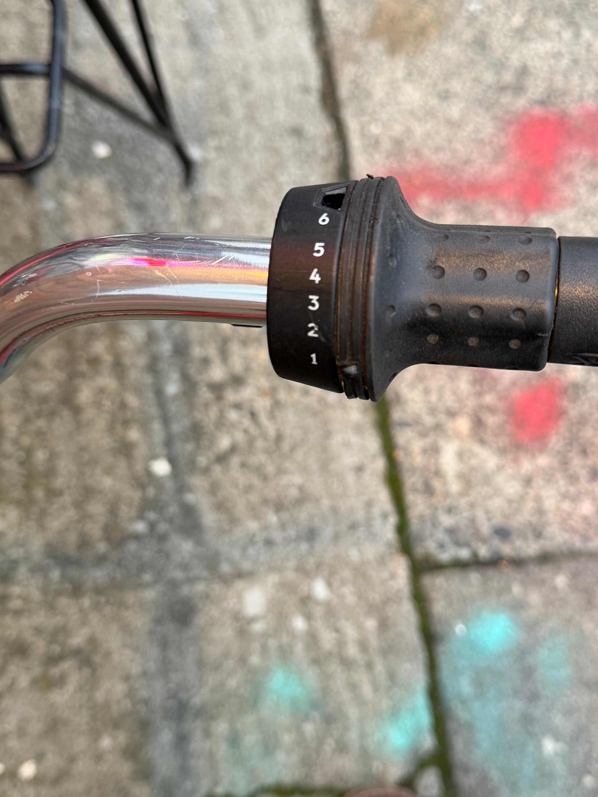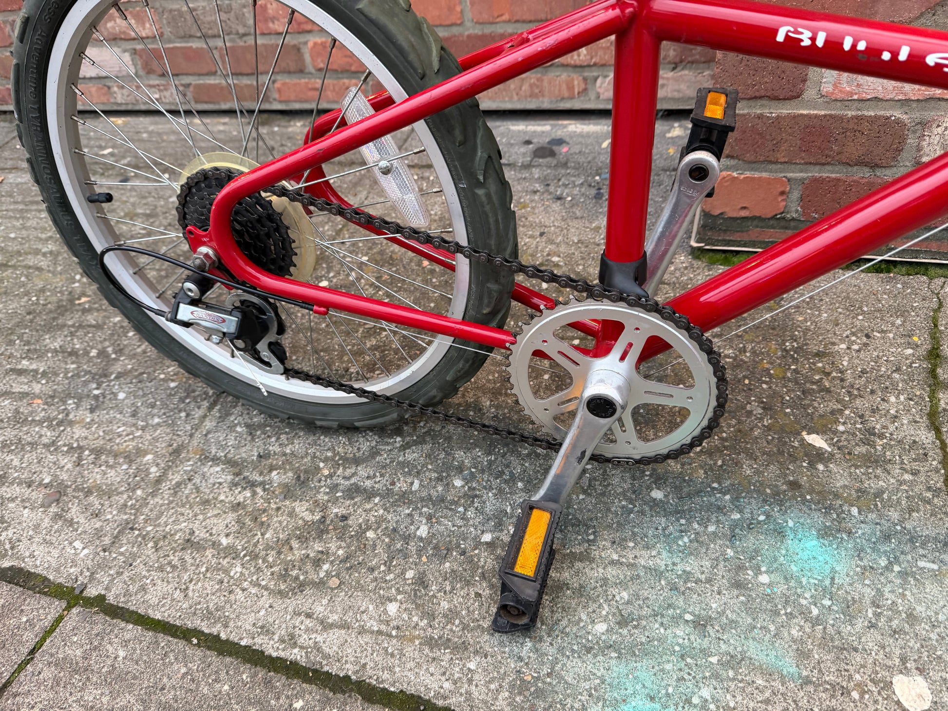 New shift cable and housing. 6 speed Sachs derailleur and rotary shifter all in good working order. WTB dinosaurous tire leaves velociraptor tracks in the dirt.