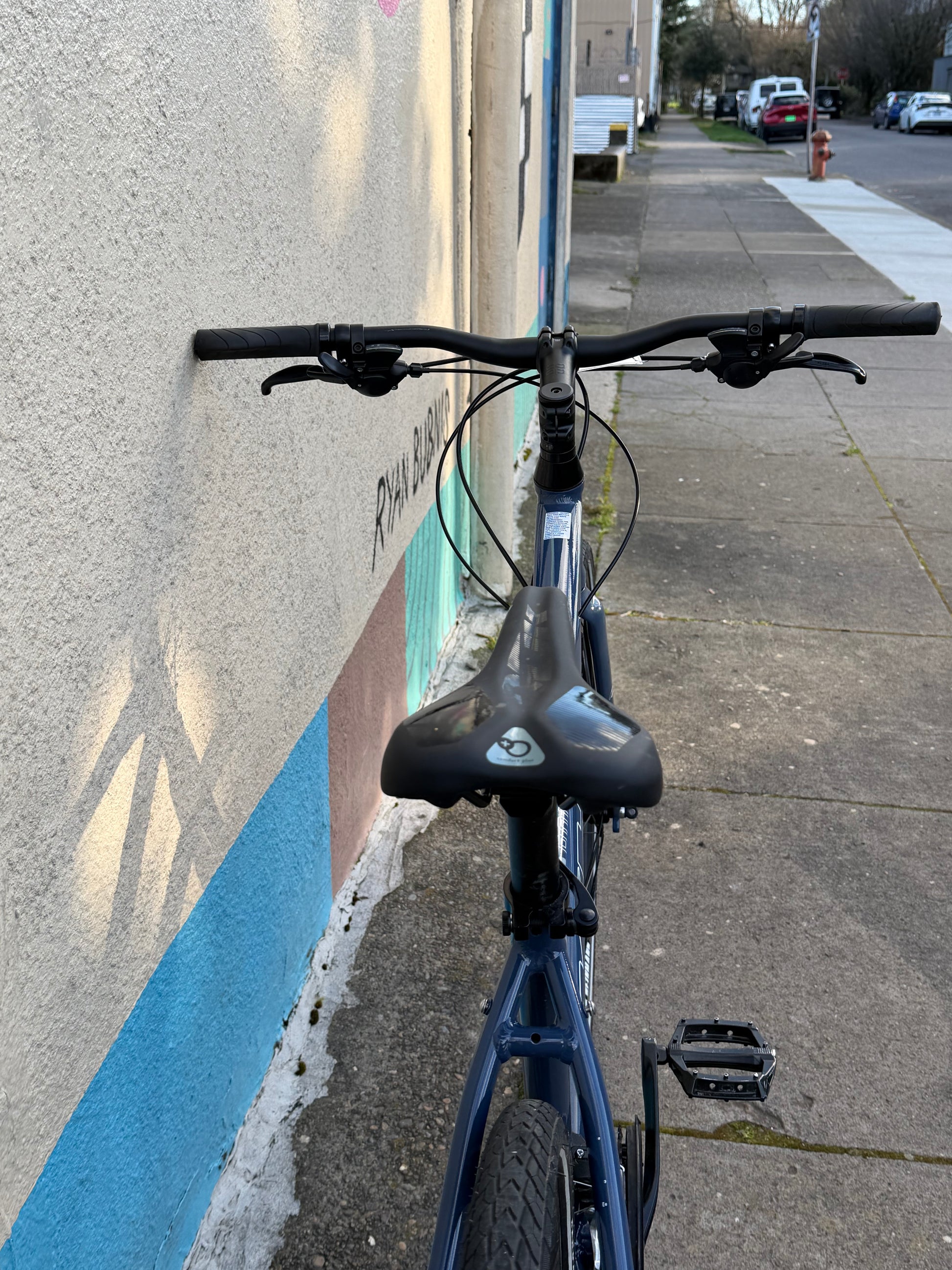 Frame swapping fun got us this creation: a commuter hybrid bike with a 3x8 triple drivetrain, 700c wheels and 38mm gravel tires for commuter fun. Disc brakes too! Medium size only, this one bike only.