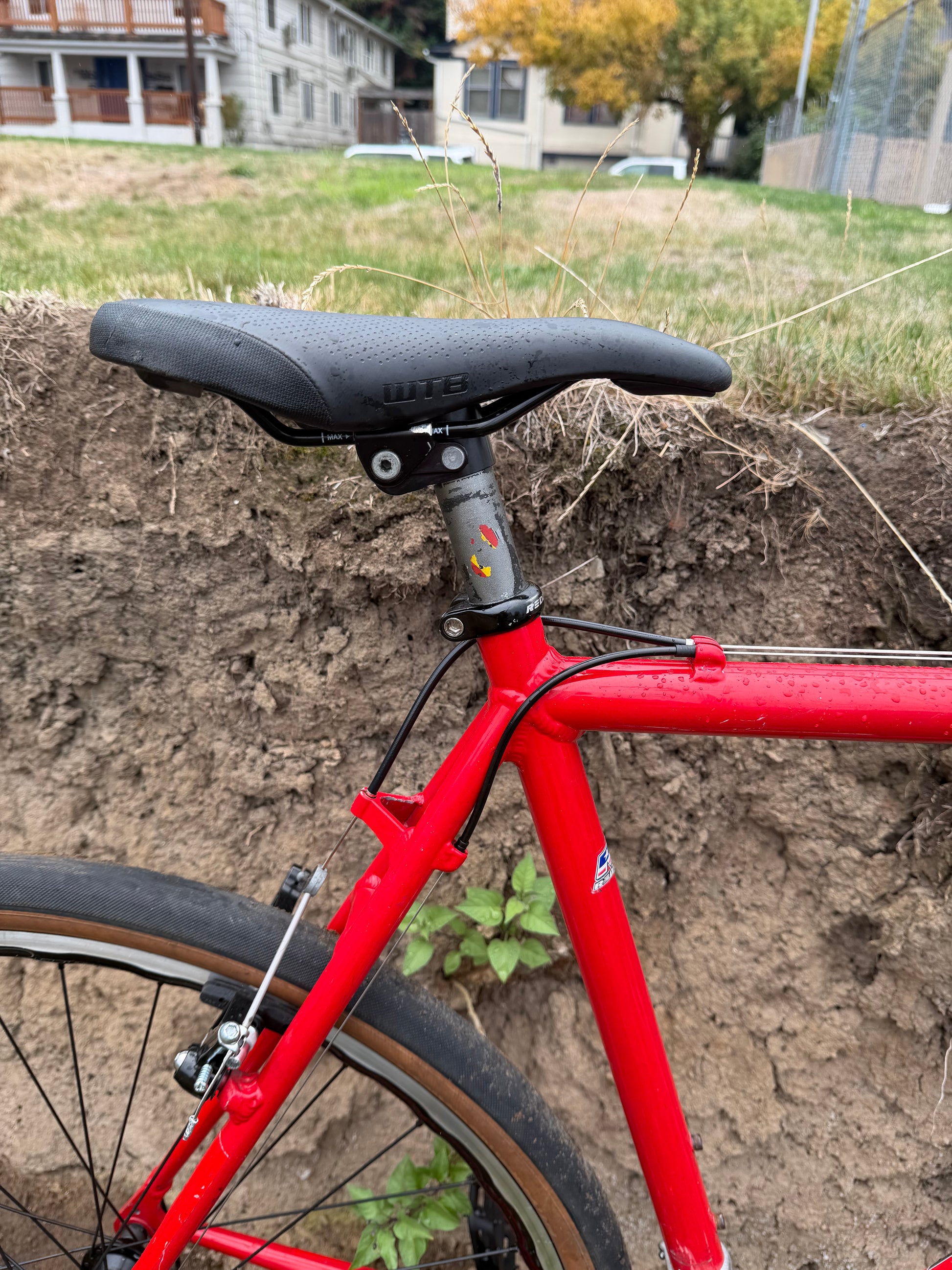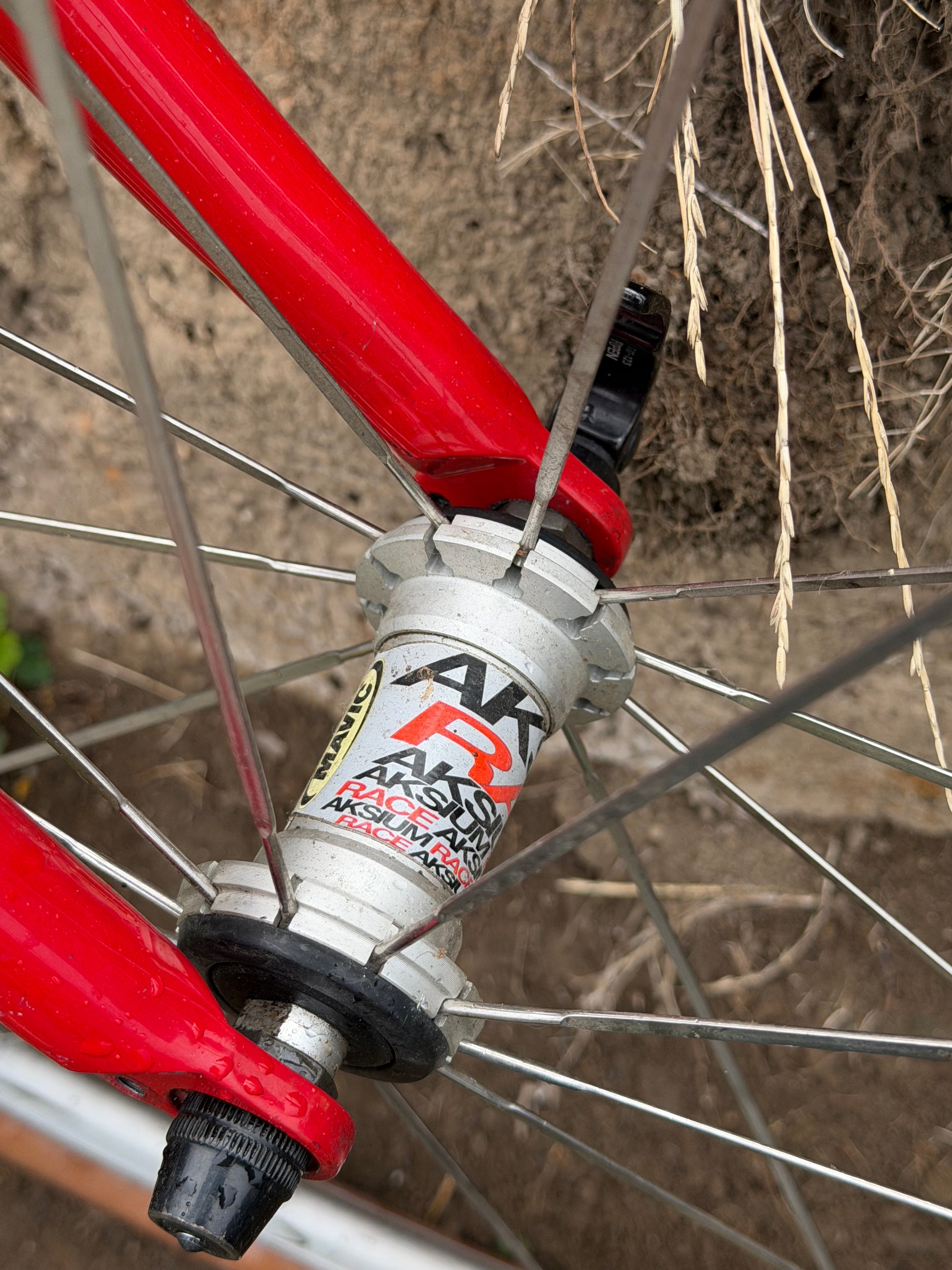 A rat bike rebuilt from a redline conquest frameset and mismatched Mavic wheelset. It’s an interesting mix of parts massaged into a 1x drivetrain. old and new with durable functionality over shiny new bleeding edge short lifespan.