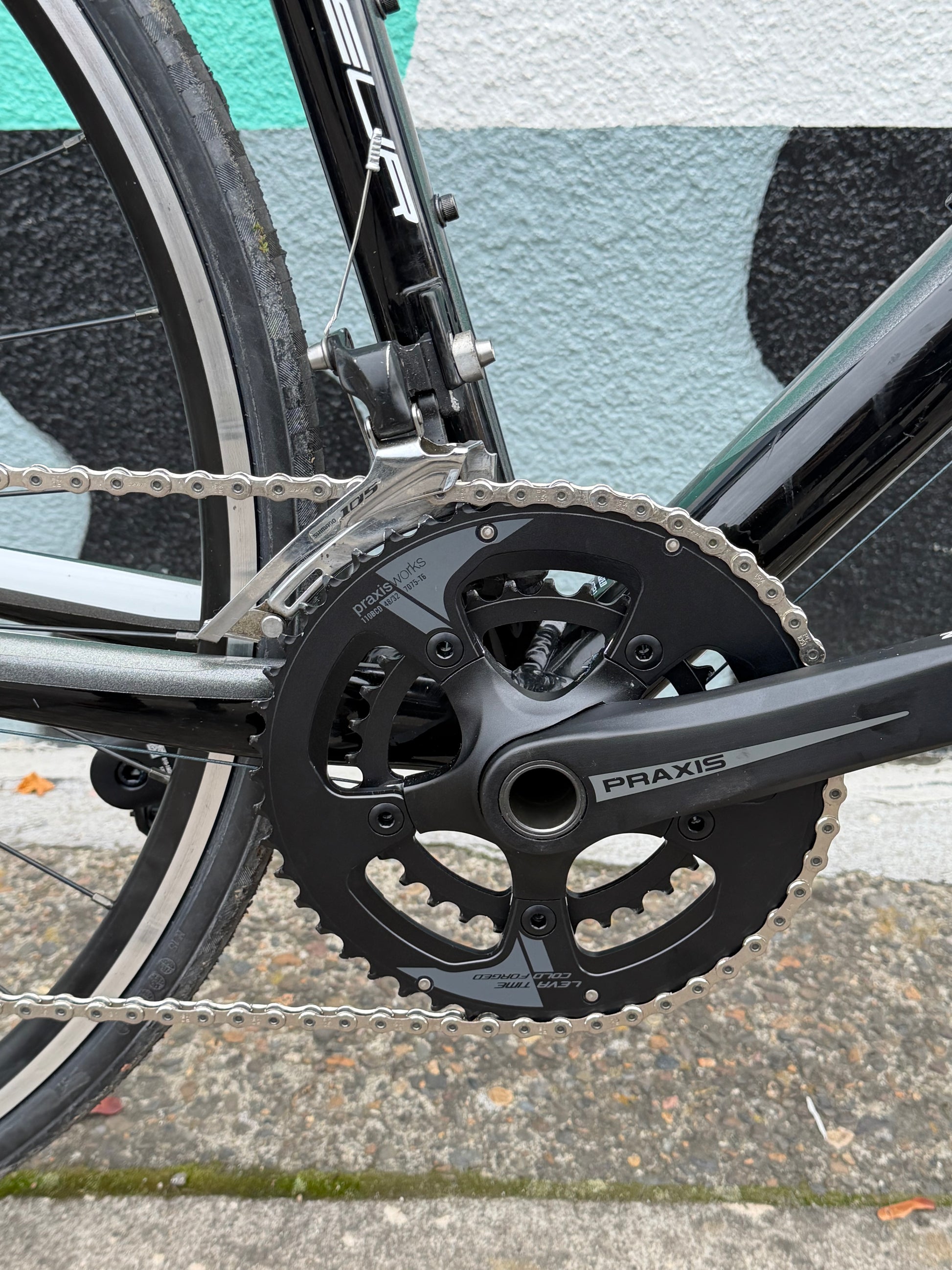 New everything really: Praxis works Zayante 2x crank with an easy to ride cyclocross setup. Shimano 9 speed wide range cassette and SRAM chain. Grips, cable and housing, tires and some supple Panaracer 25mm road tires round it out.