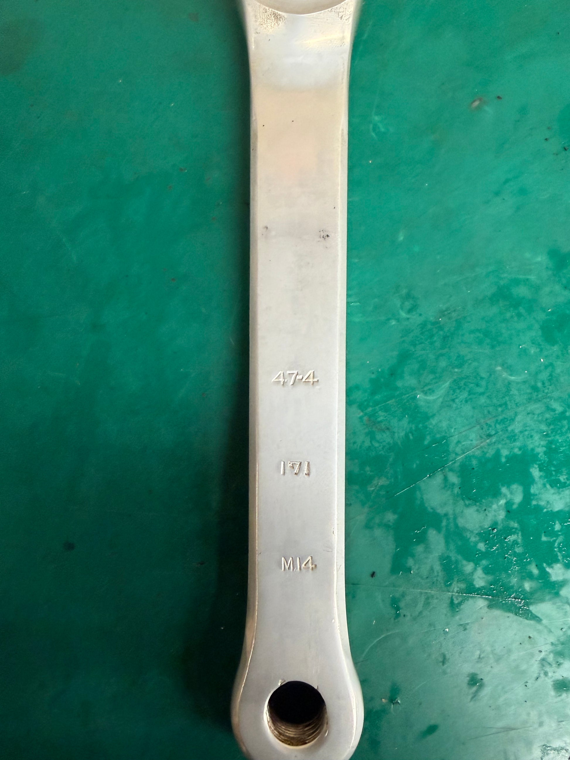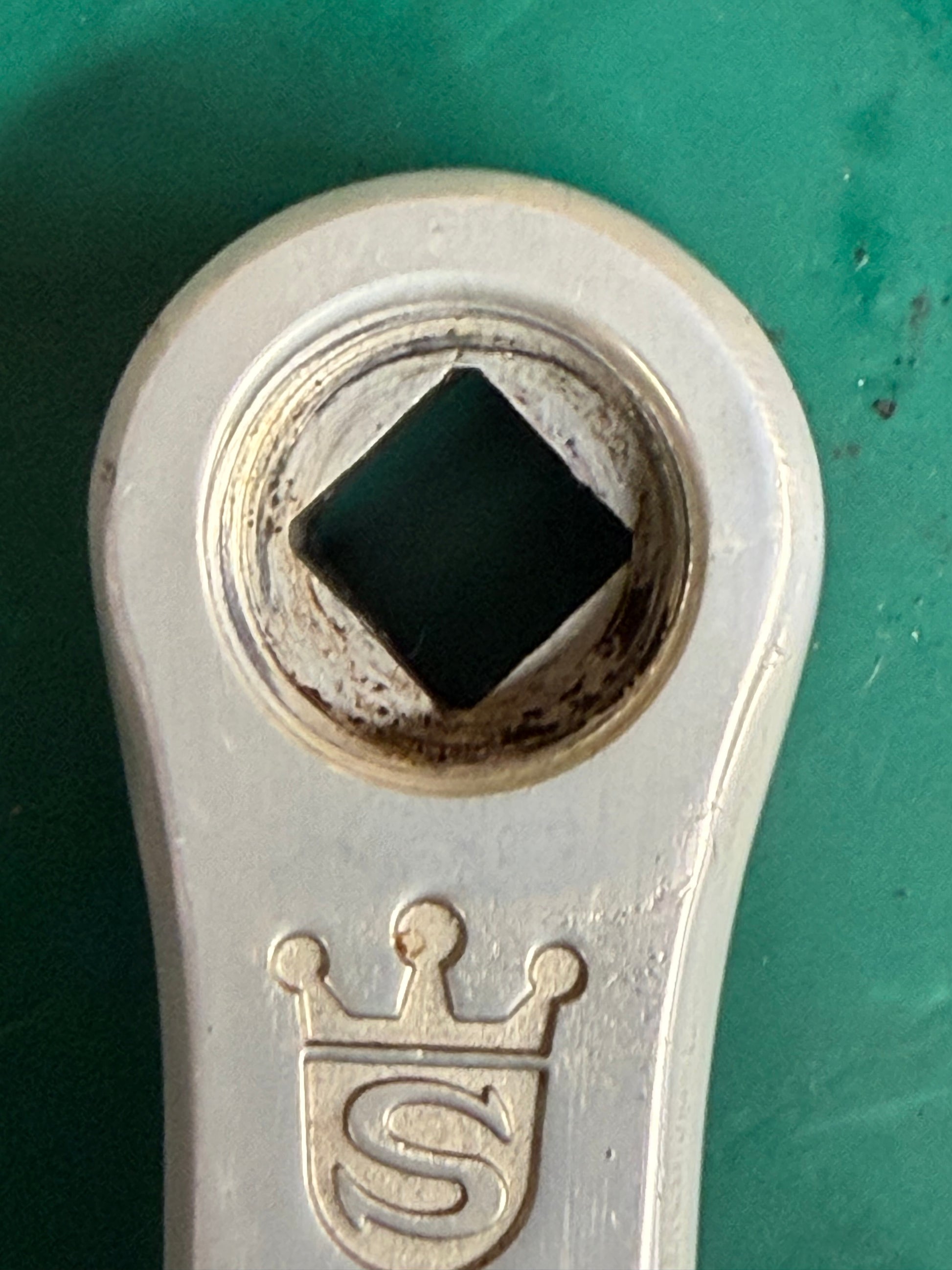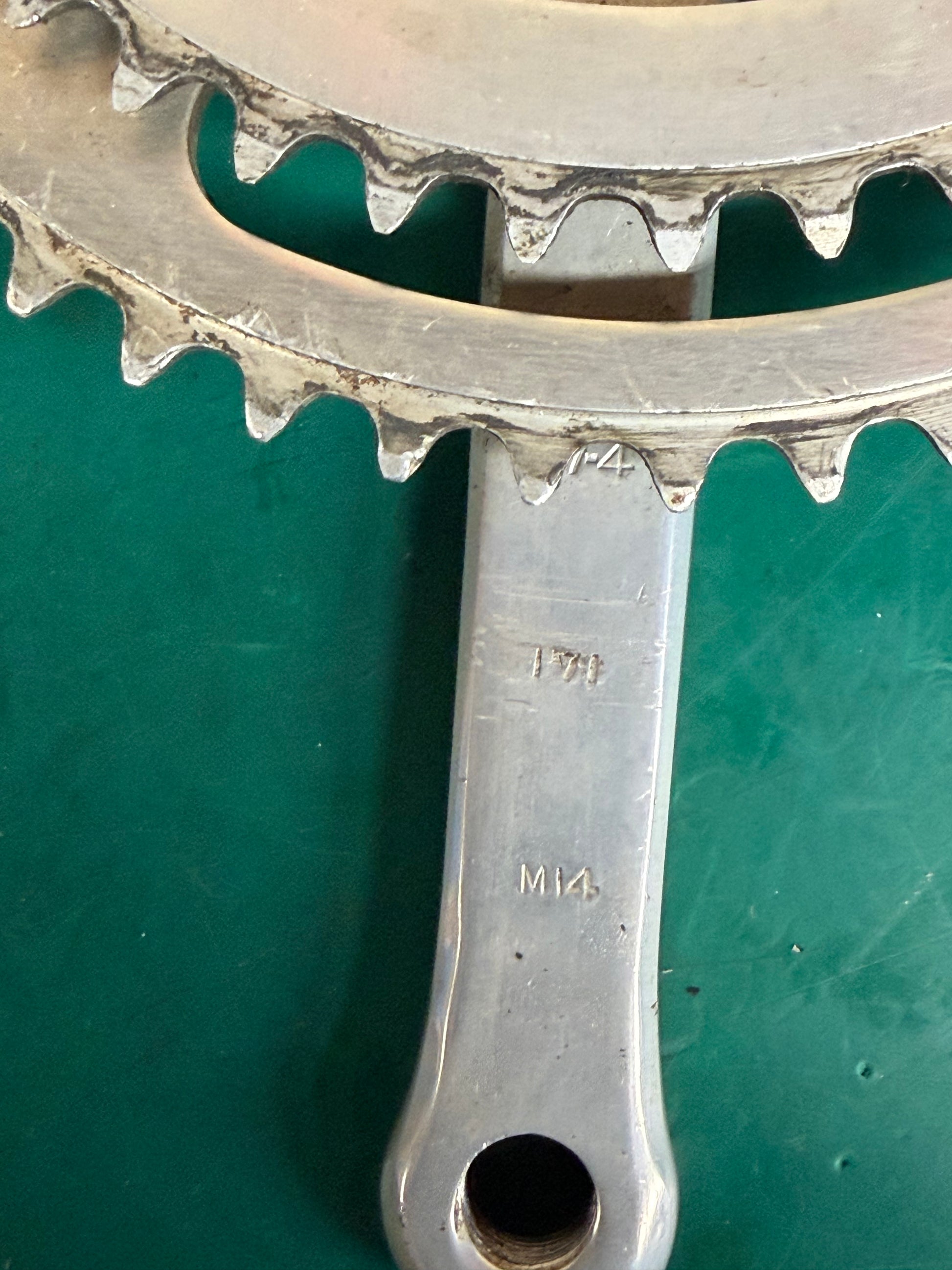 A very good condition (VGC) crankset from Sugino. Cold forged Mighty Competition level. 171mm arm length. 52/42 chainrings. 144bcd pattern.