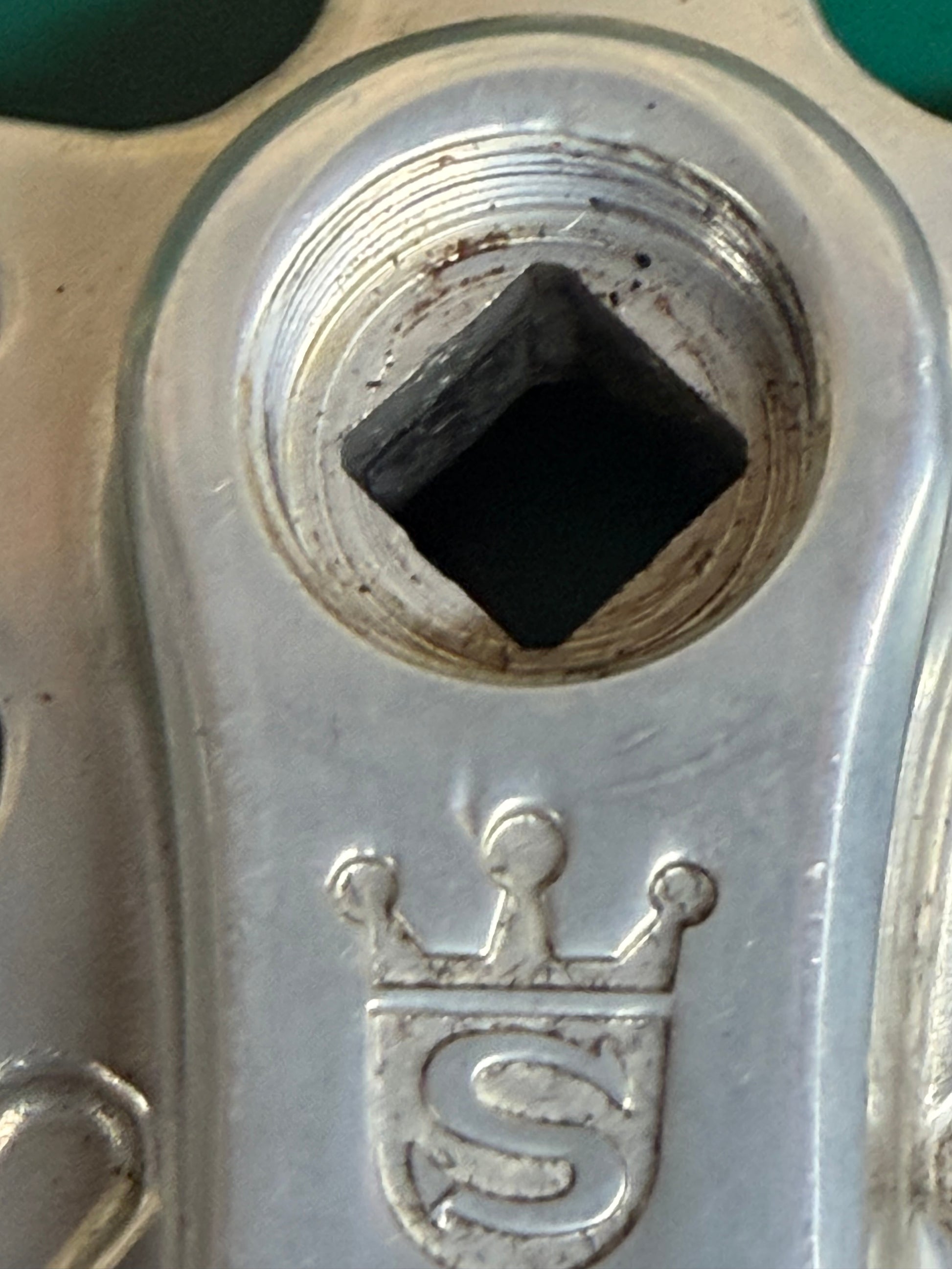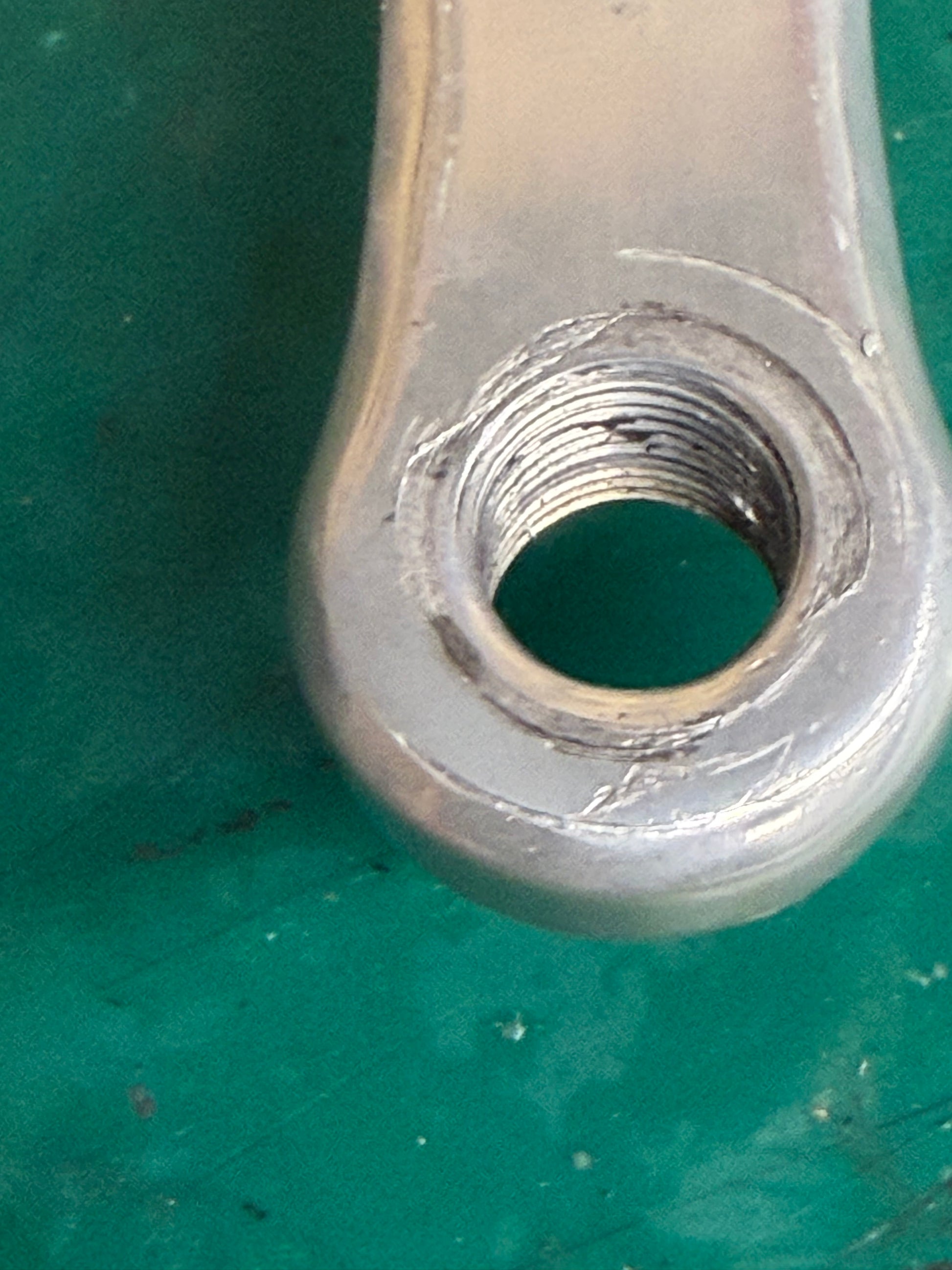 FRENCH THREAD pedal holes for the purists. They can be tapped to world standard 9/16” x 20tpi if you have the taps. This is a common work around and makes for a great solution if you don’t have some vintage lyotard pedals or want more options for pedal choice.