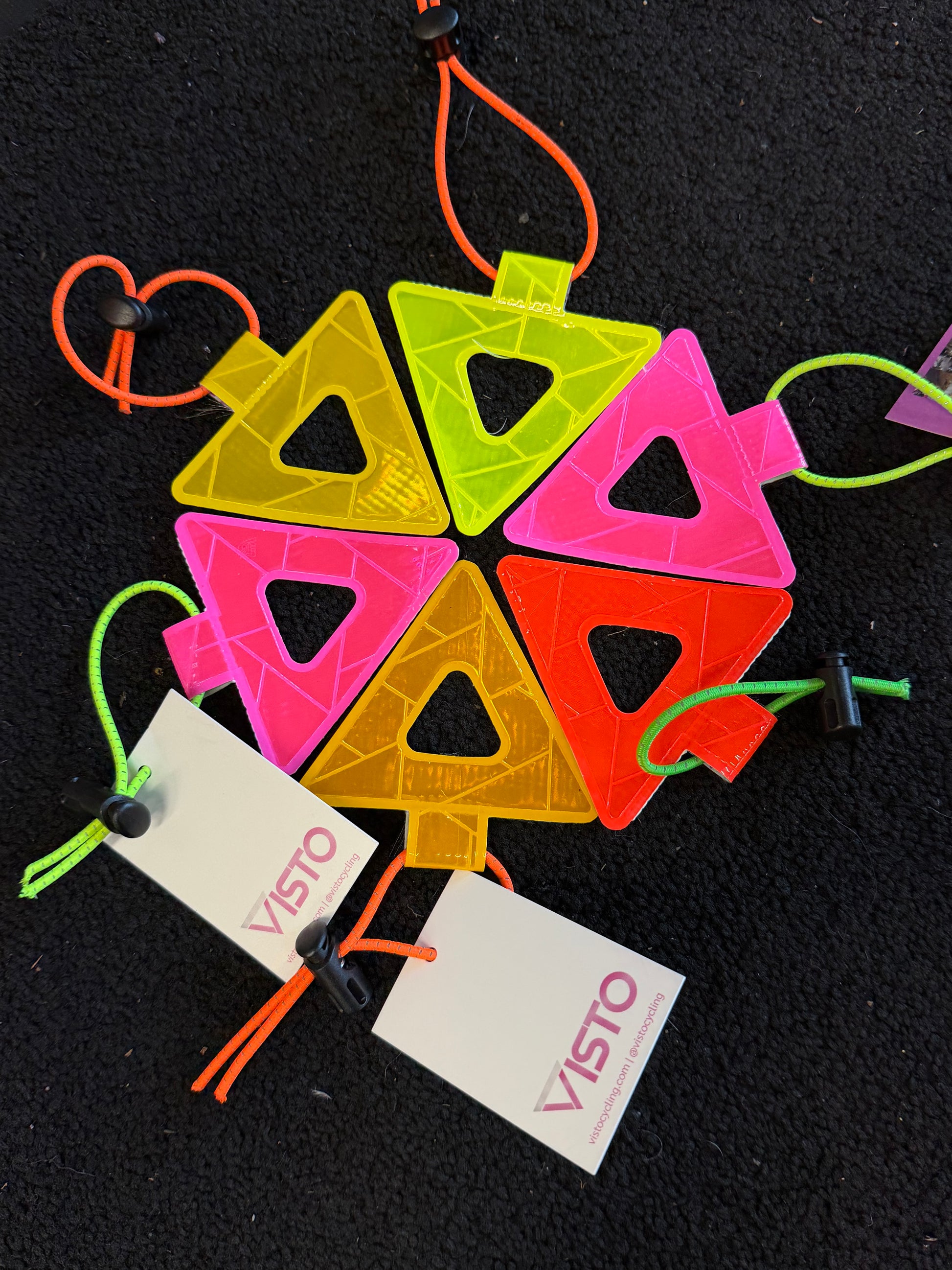 It’s reflectives and safety season! Just picked up some Visto Cycling safety triangles for the end of daylight savings time. A bunch of colors in both standard and mini size.